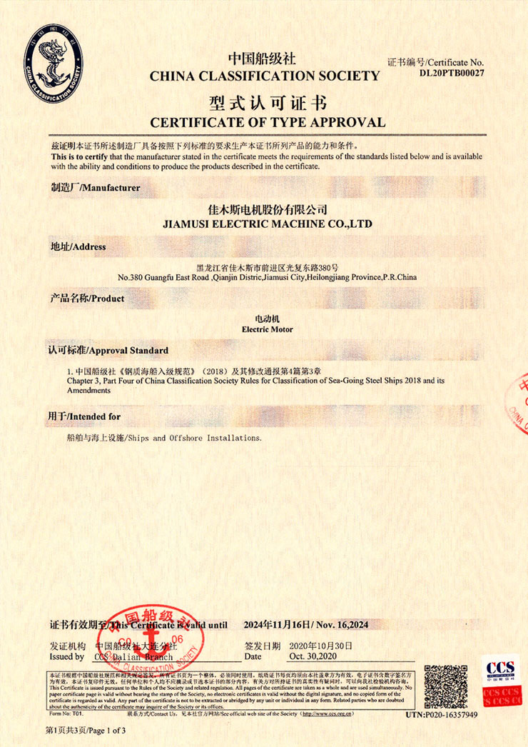 中央第一机械工业部佳木斯电机厂